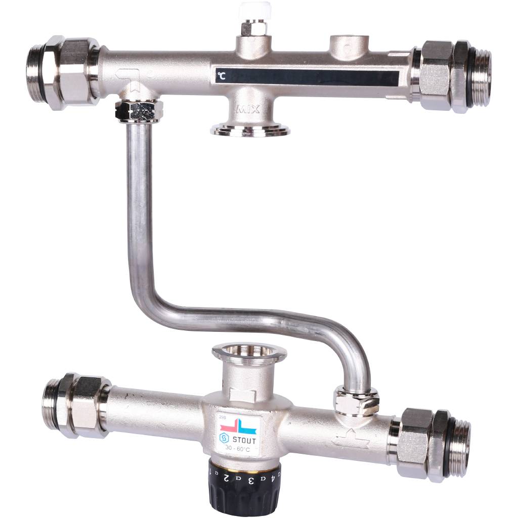 STOUT Насосно-смесительный узел с термостатическим клапаном 30-60°C, без насоса - купить в интернет-магазине Santeh-svar