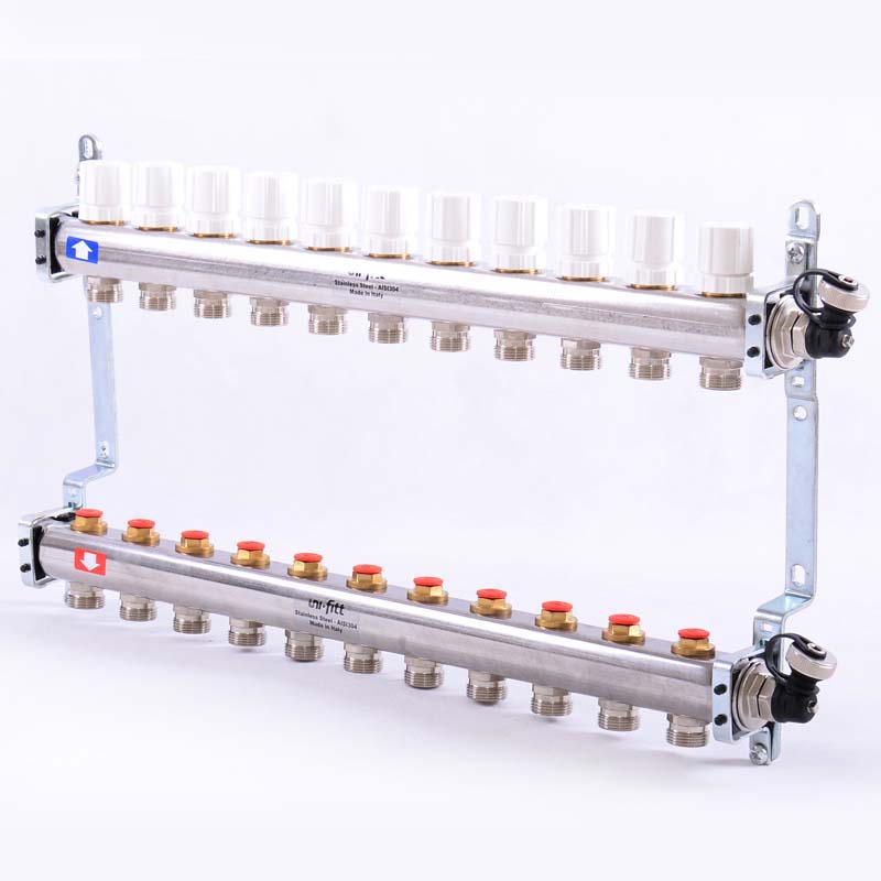 Коллекторная группа из нержавеющей стали с регулировочными и термостатическими вентилями UNI-FITT 1x3/4ЕК 11 выходов - купить в интернет-магазине Santeh-svar