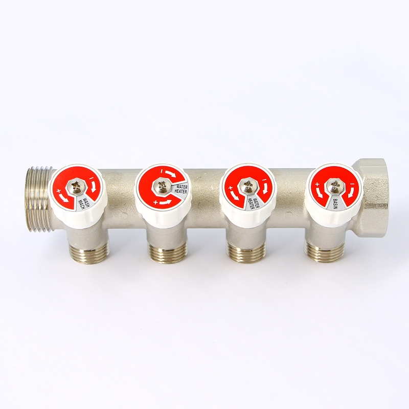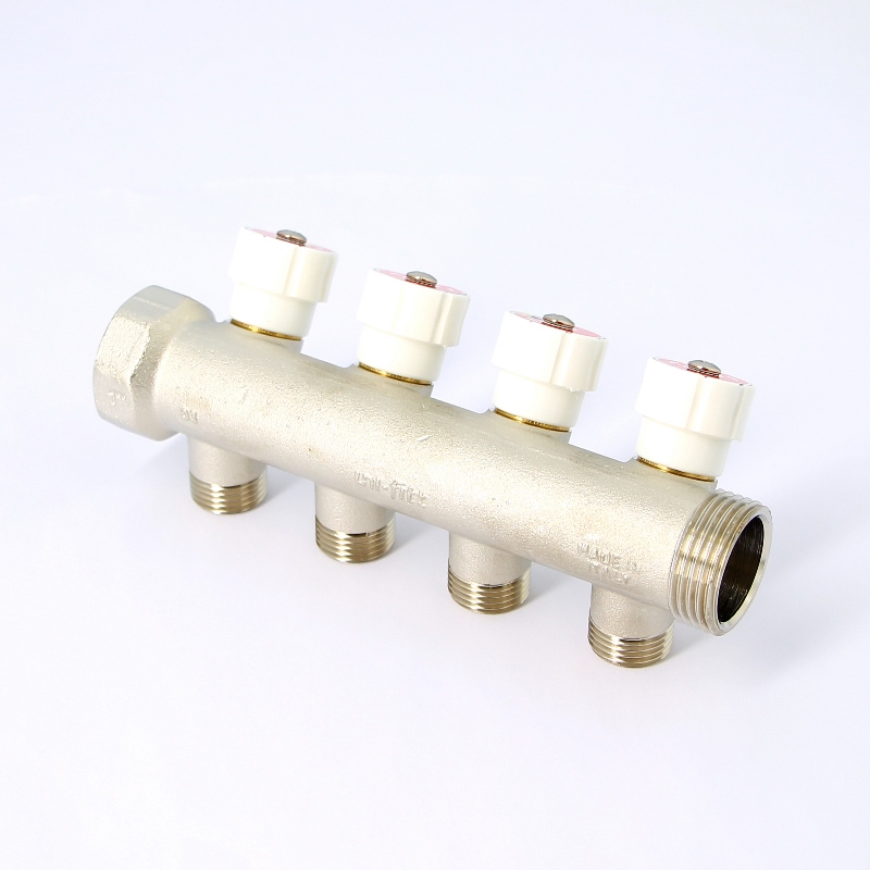 —Коллектор НВ 1 с вентилями никелированный UNI-FITT 4 выхода 1/2Н 40мм