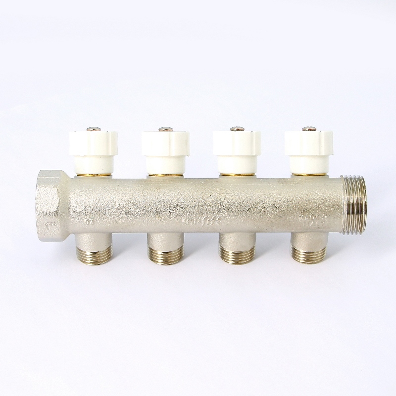 Коллектор НВ 1 с вентилями никелированный UNI-FITT 4 выхода 1/2Н 40мм - купить в интернет-магазине Santeh-svar