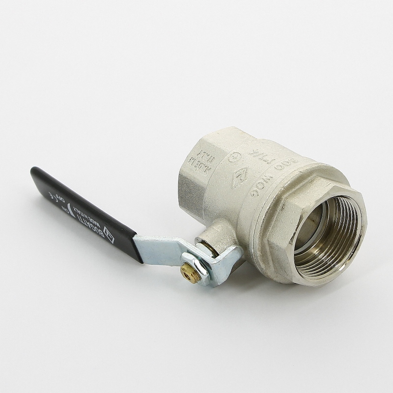 шар — латунь, уплотнение шара — фторопласт, уплотнение штока — NBR, шток — латунь, ручка — сталь