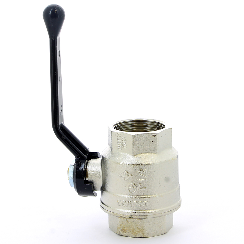 шар — латунь, уплотнение шара — фторопласт, уплотнение штока — NBR, шток — латунь, ручка — алюминий