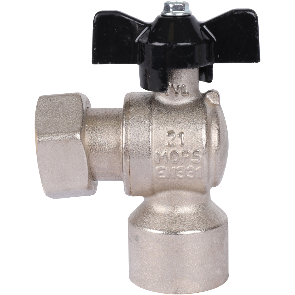 —STOUT Кран шаровой с накидной гайкой угловой, ВР/накидная гайка, ручка бабочка 3/4x3/4