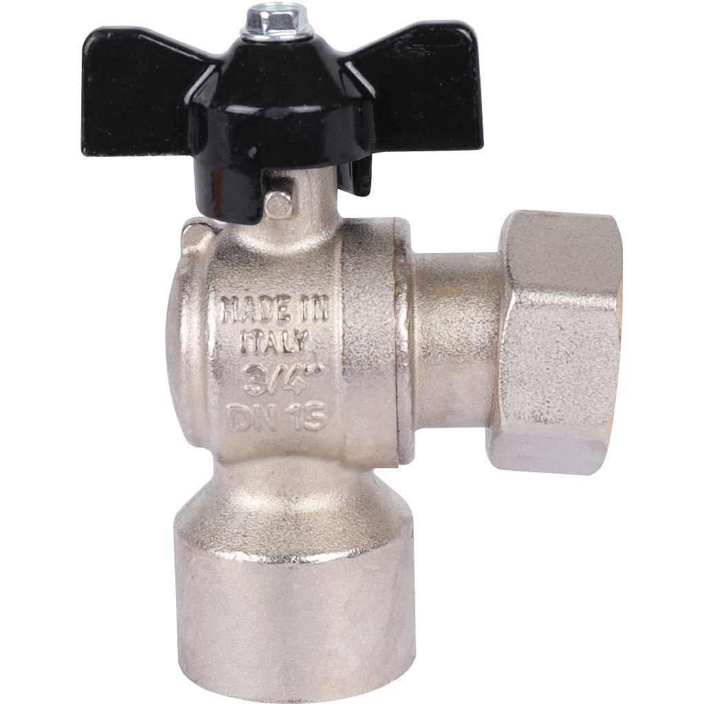 STOUT Кран шаровой с накидной гайкой угловой, ВР/накидная гайка, ручка бабочка 3/4x3/4 - купить в интернет-магазине Santeh-svar